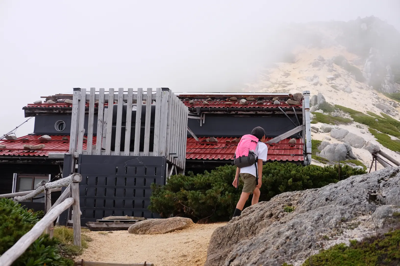 駒峰ヒュッテに到着。早出はしてるけど、いつものペースで歩けるとは限らない(過去2回がまさにそれ)。一応、計画したタイムスケジュールより早く着くことができたので、ここでやっと確信した。山頂に立てると。長い道のりだった。
